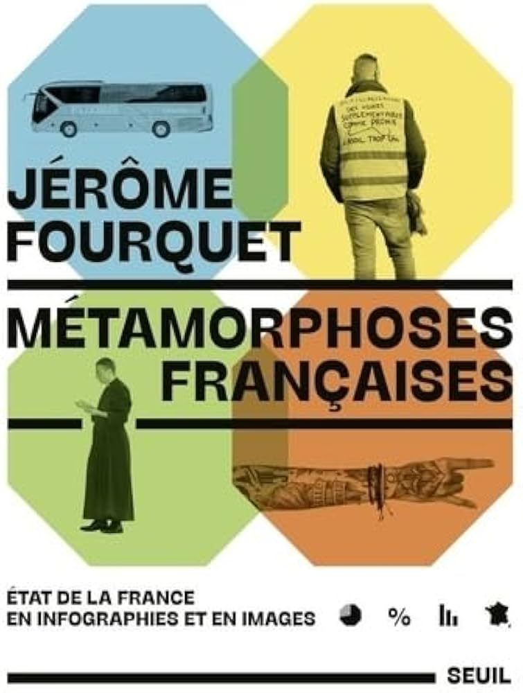 En un seul volume, l’essayiste et sondeur présente une photographie dynamique de la France d’aujourd’hui. Des grandes mutations sociales, religieuses et politiques aux différents modes de vie et pratiques quotidiennes : l’état de la France en infographies et en images. Jérôme Fourquet revient sur le déclin du catholicisme et l’essor de nouvelles spiritualités, sur la grande bascule anthropologique en cours – la reconfiguration des structures familiales et un nouveau rapport au corps –, mais aussi sur le processus d’archipélisation affectant notre pays. Il aborde également l’américanisation de la France et le passage d’une économie de la production à celle de la consommation. Cet ouvrage propose ainsi une rétrospective complète d’une France qui s’est métamorphosée en seulement quelques décennies, enrichie de cartes inédites du vote Macron parmi les Français de l’étranger, des émeutes de l’été 2023, de l’implantation des McDonald’s ou bien encore du maillage de la compagnie low cost FlixBus et de photographies, qui nous livrent comme un album de famille collectif.